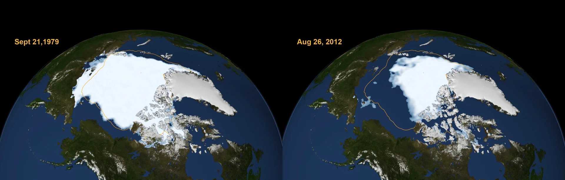 Water Cycle: A vivid example of water cycle changes can be seen in the disappearance of the Arctic Ocean ice cap at the North Pole, which has lost half of its volume in summer in less than 40 years from rising temperatures. Besides glacier and ice cap melting, water cycle changes from climate change-induced rising temperatures also include the weather: more and deeper droughts, more likelihood of heatwaves that damage crops and human health, and more frequent extreme precipitation events and severe storms. Oceans are also rising – getting deeper – as meltwater from icecaps and glaciers flows into the sea from the land.